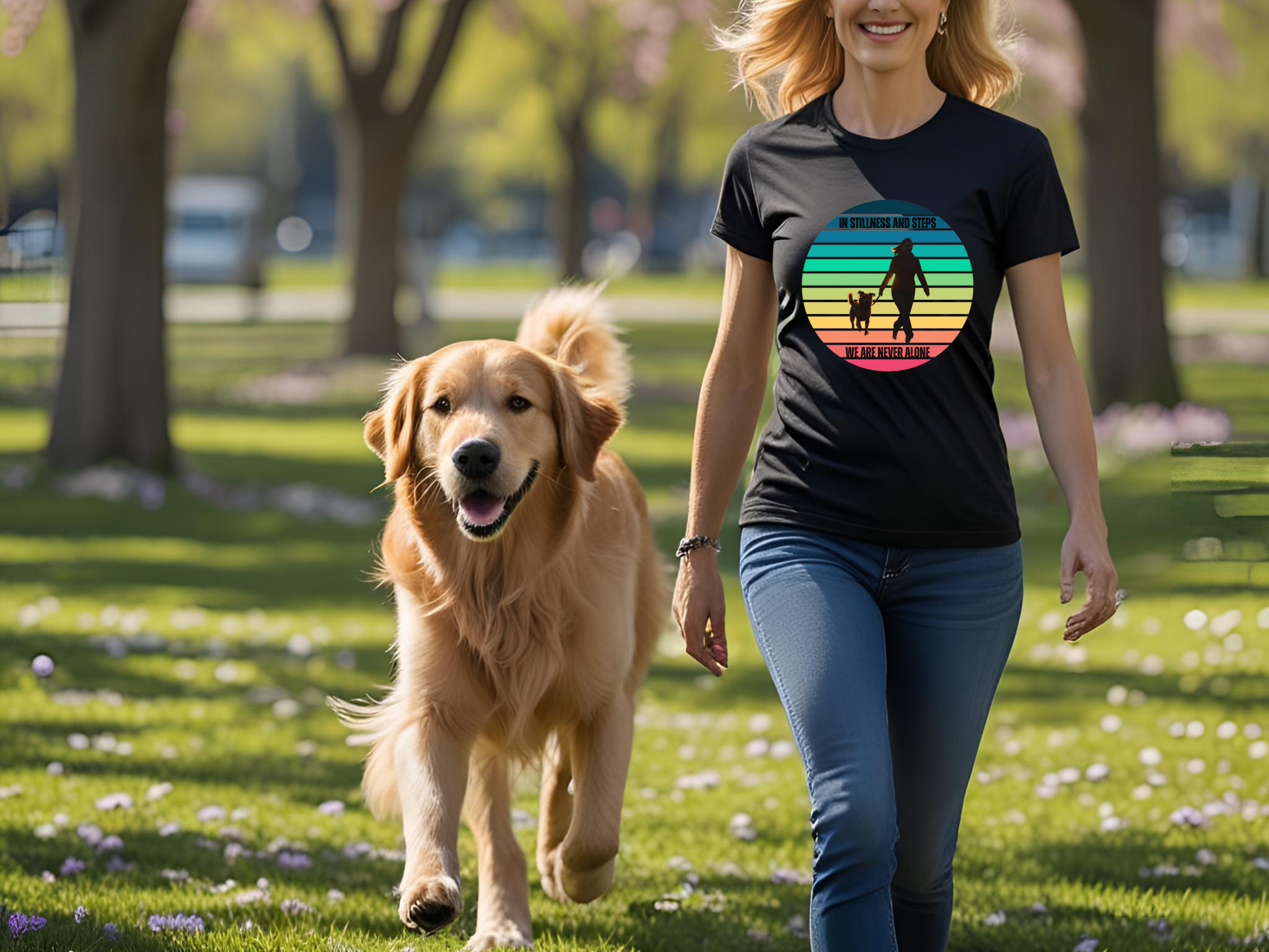 Let your walk be a prayer and your steps be filled with peace. This inspiring Christian t-shirt features a retro sunset silhouette of a woman walking her dog, reminding us of the Lord’s loving presence in every moment. With quiet strength from Psalm 46:10 and the gentle comfort of Psalm 23, this shirt speaks to faith, companionship, and the peace that comes from trusting God.