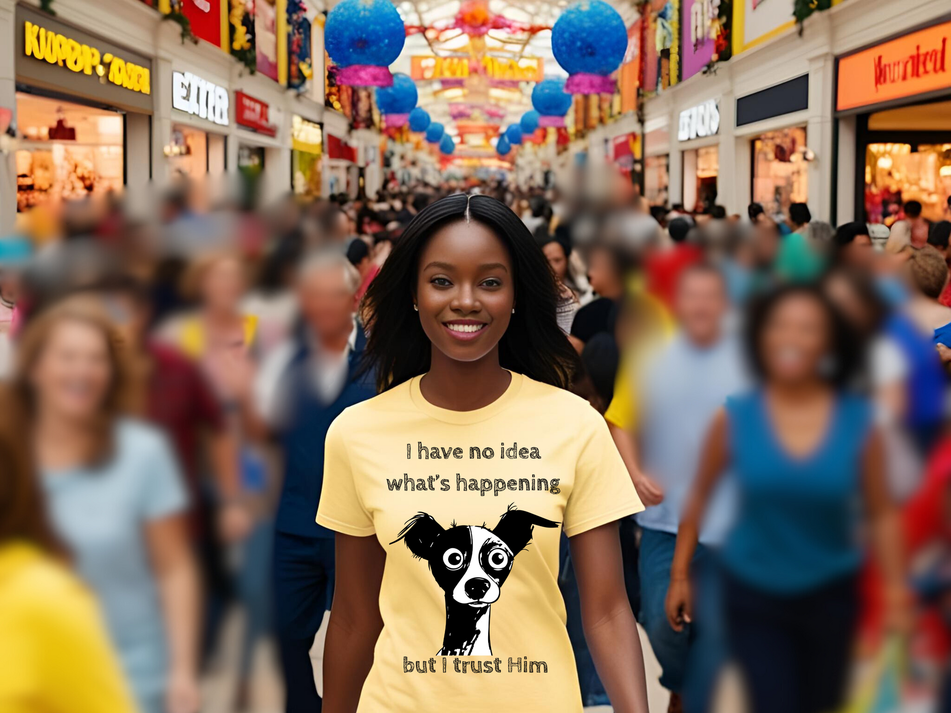 When life feels overwhelming and the path ahead is unclear, let this shirt be your gentle reminder: “I have no idea what’s happening, but I trust Him.”