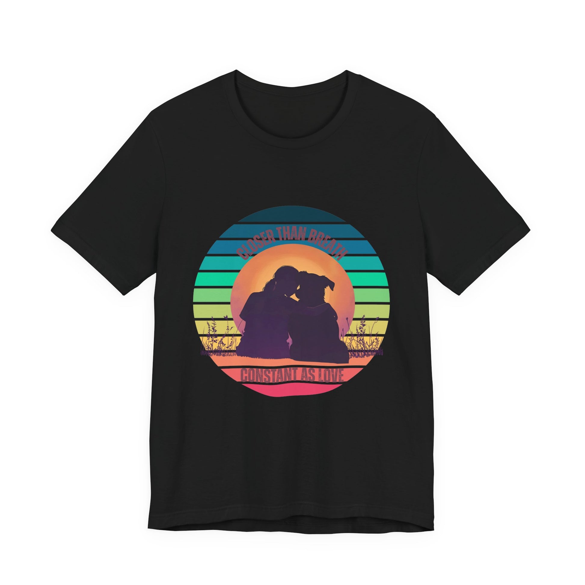 Closer Than a Friend T-Shirt | Christian Dog Lover Retro Sunset Tee | Proverbs 18:24 Inspired
