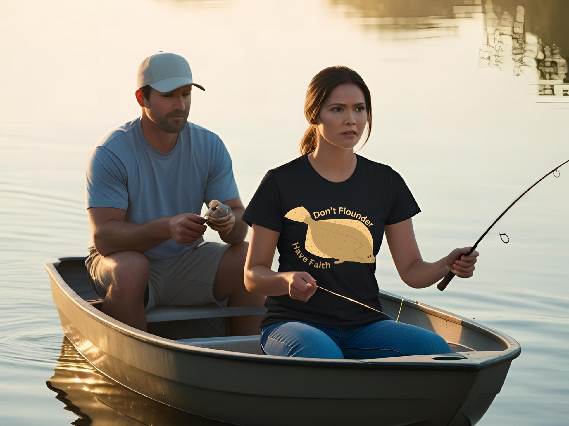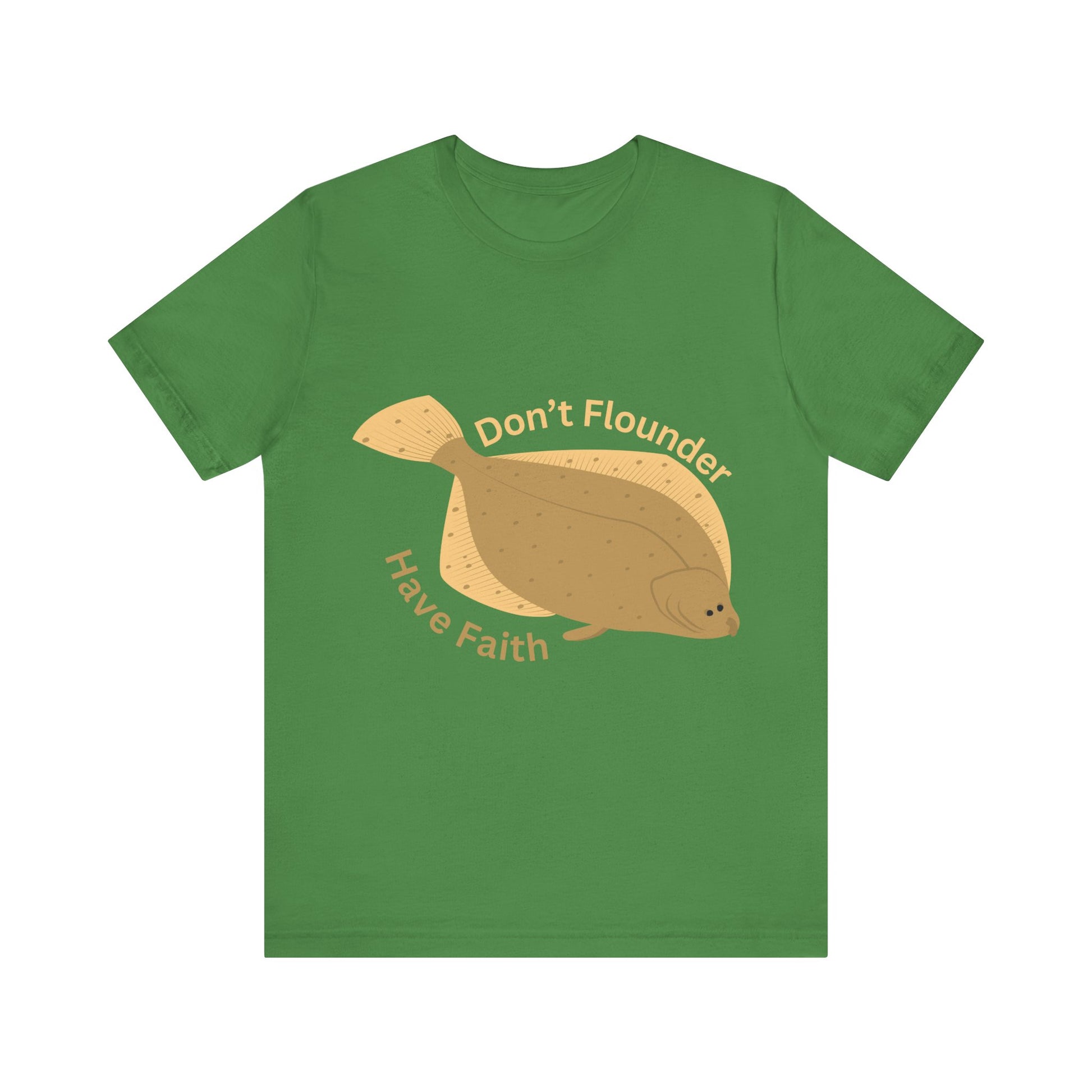 "Don’t Flounder, Have Faith" – Inspirational Fish Pun T-Shirt | Uplifting Christian Humor Tee