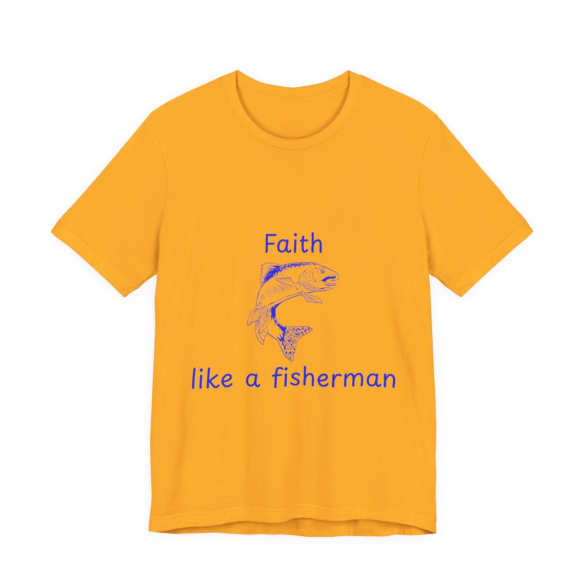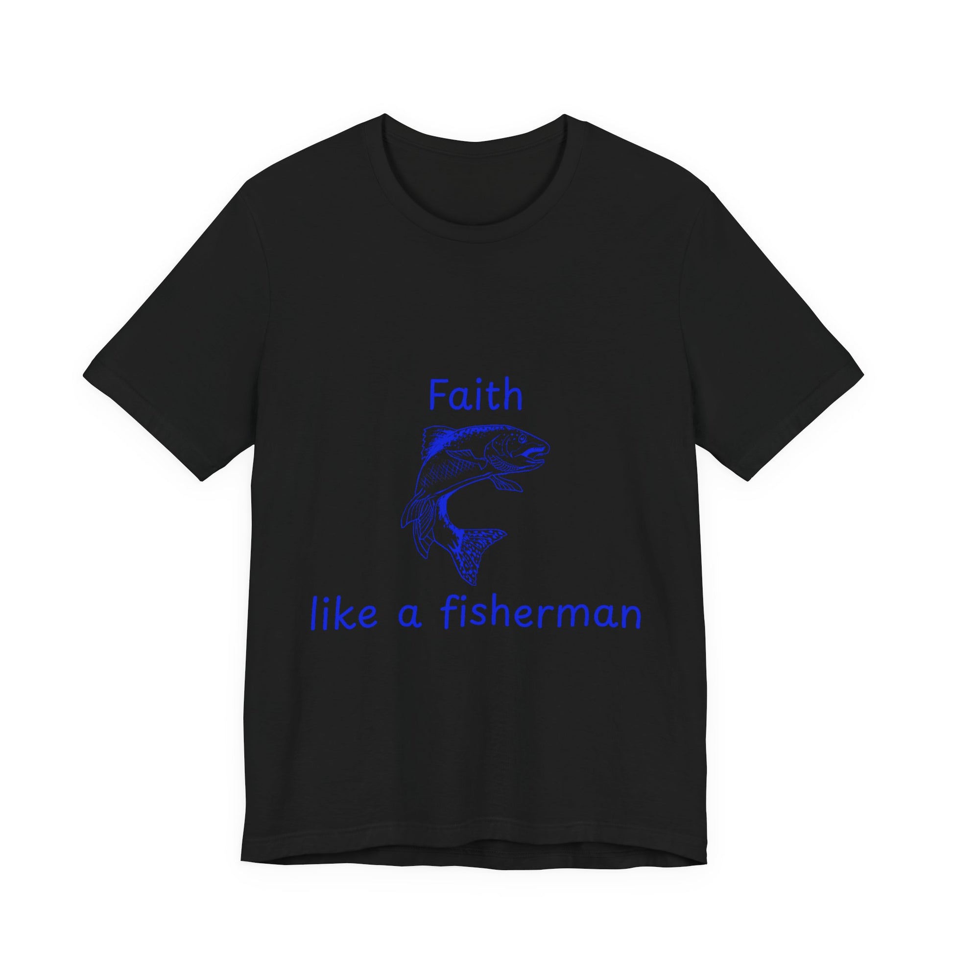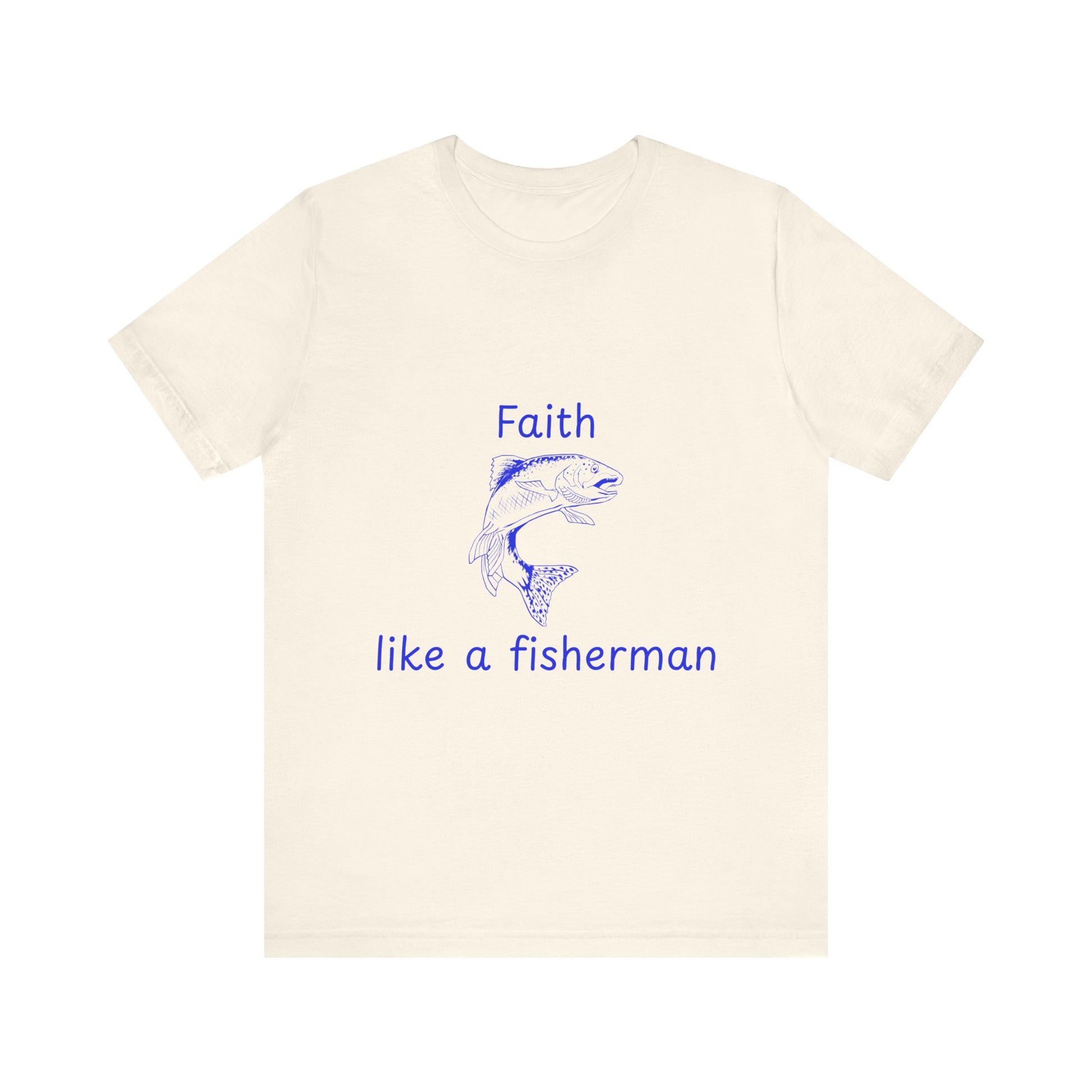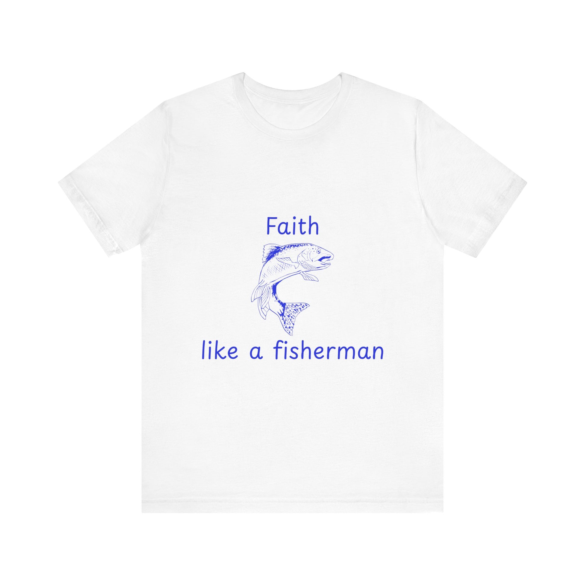 Faith Like a Fisherman T-Shirt – Christian Blue Lettering Fish Design Tee Unisex Tee
