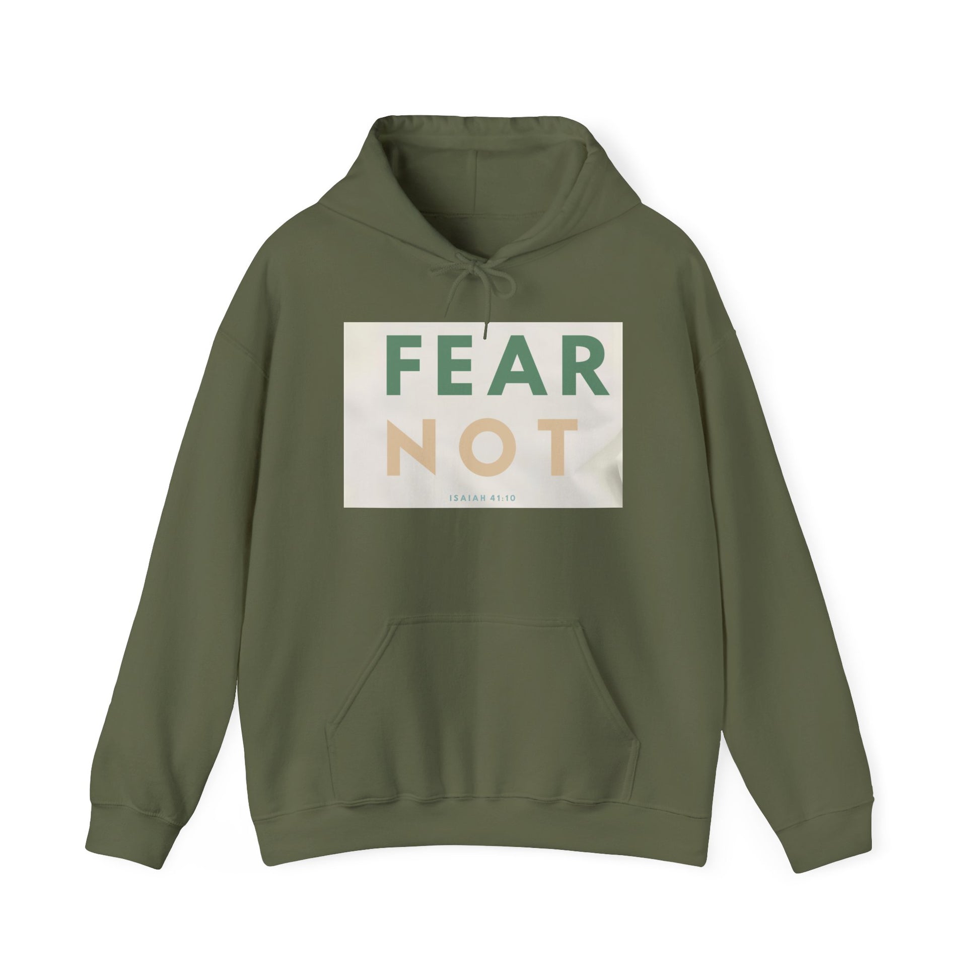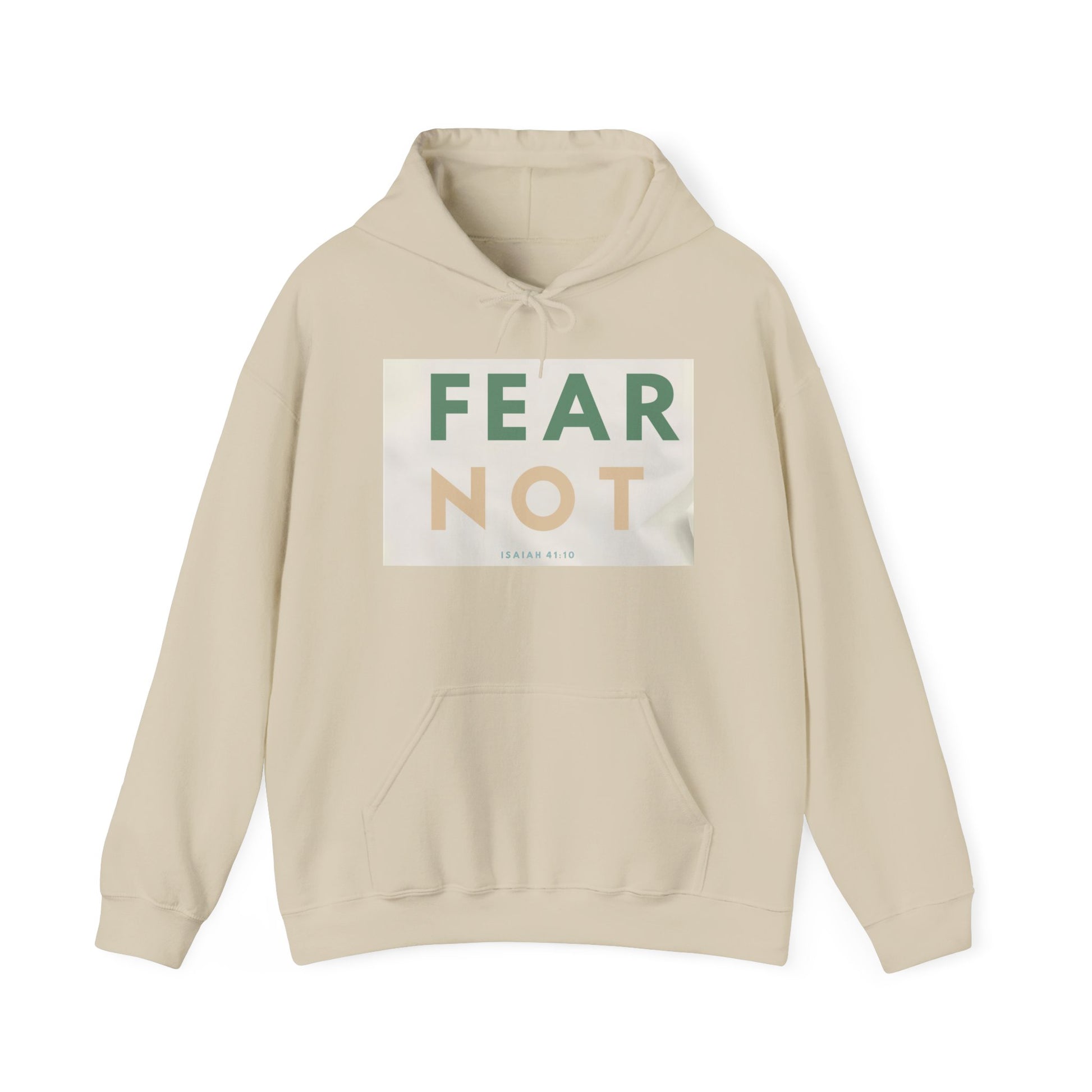 A comfy and cozy hoodie featuring the words 'fear not' with a reference to Isaiah 41:10. Perfect for those seeking comfort and inspiration. Ideal for adults looking for a warm and stylish option for everyday wear or as a gift for loved ones. Relevant for religious holidays, inspirational occasions, or as a thoughtful gesture during challenging times.