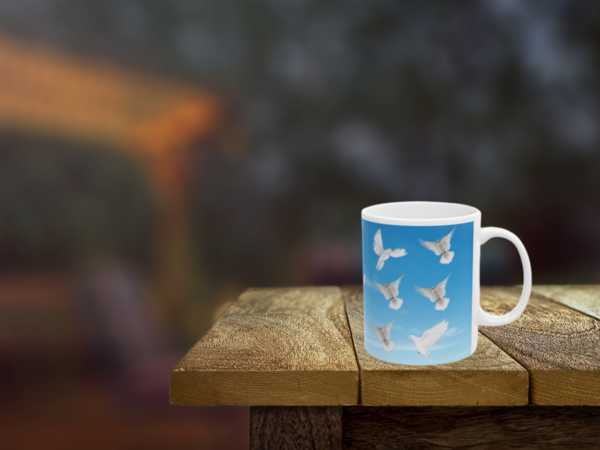 Sip your favorite drink with a daily reminder of God’s presence. This beautifully designed ceramic mug features graceful white doves – a powerful Christian symbol of the Holy Spirit, peace, and divine guidance. Perfect for morning devotionals, prayer time, or as a meaningful gift for fellow believers. Microwave and dishwasher safe.