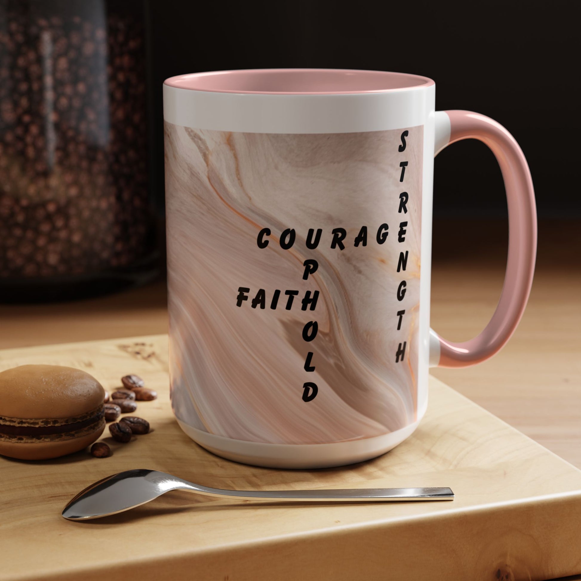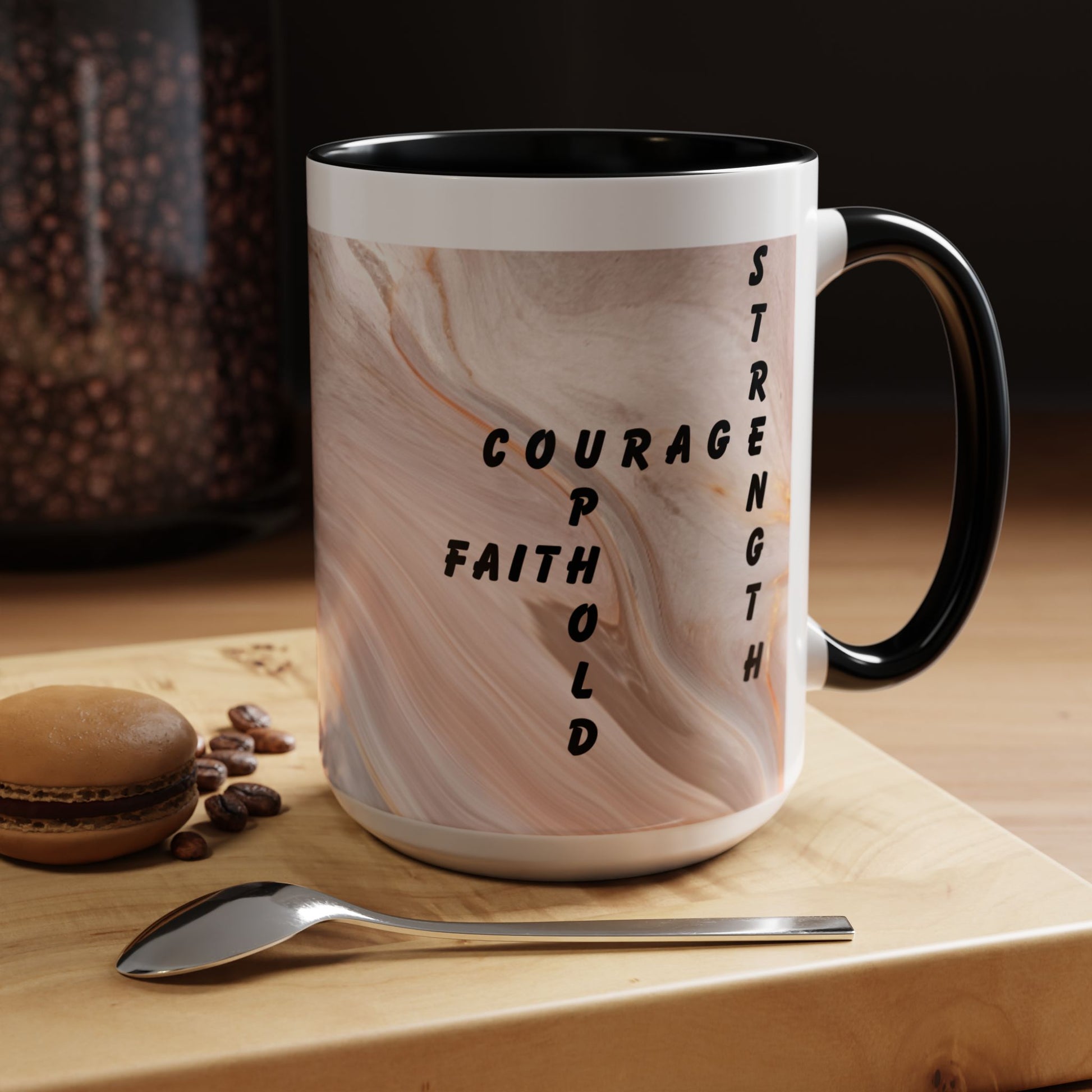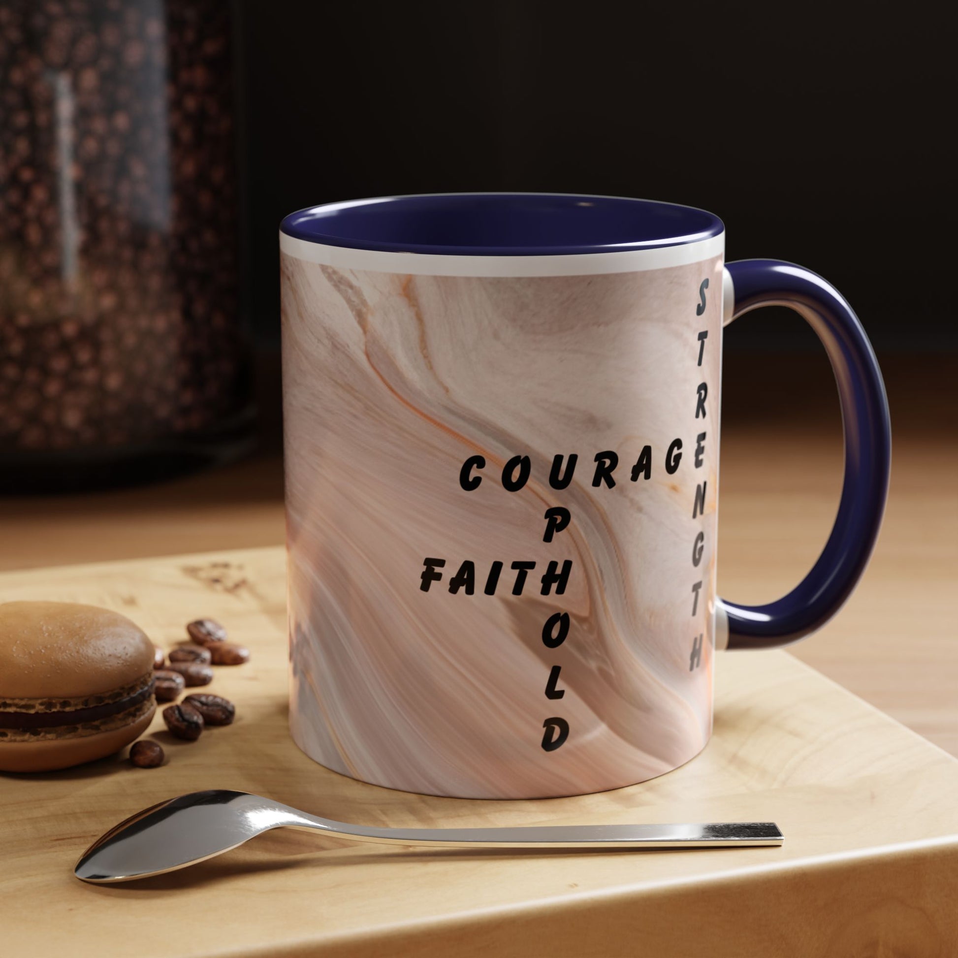 Find daily encouragement in every sip with this beautifully designed Isaiah 41:10 Christian mug. Featuring a wraparound, gently textured background and bold keywords — Strength, Courage, Faith, Uphold — on the front, with the full verse on the back, this mug is a powerful reminder of God’s promises.