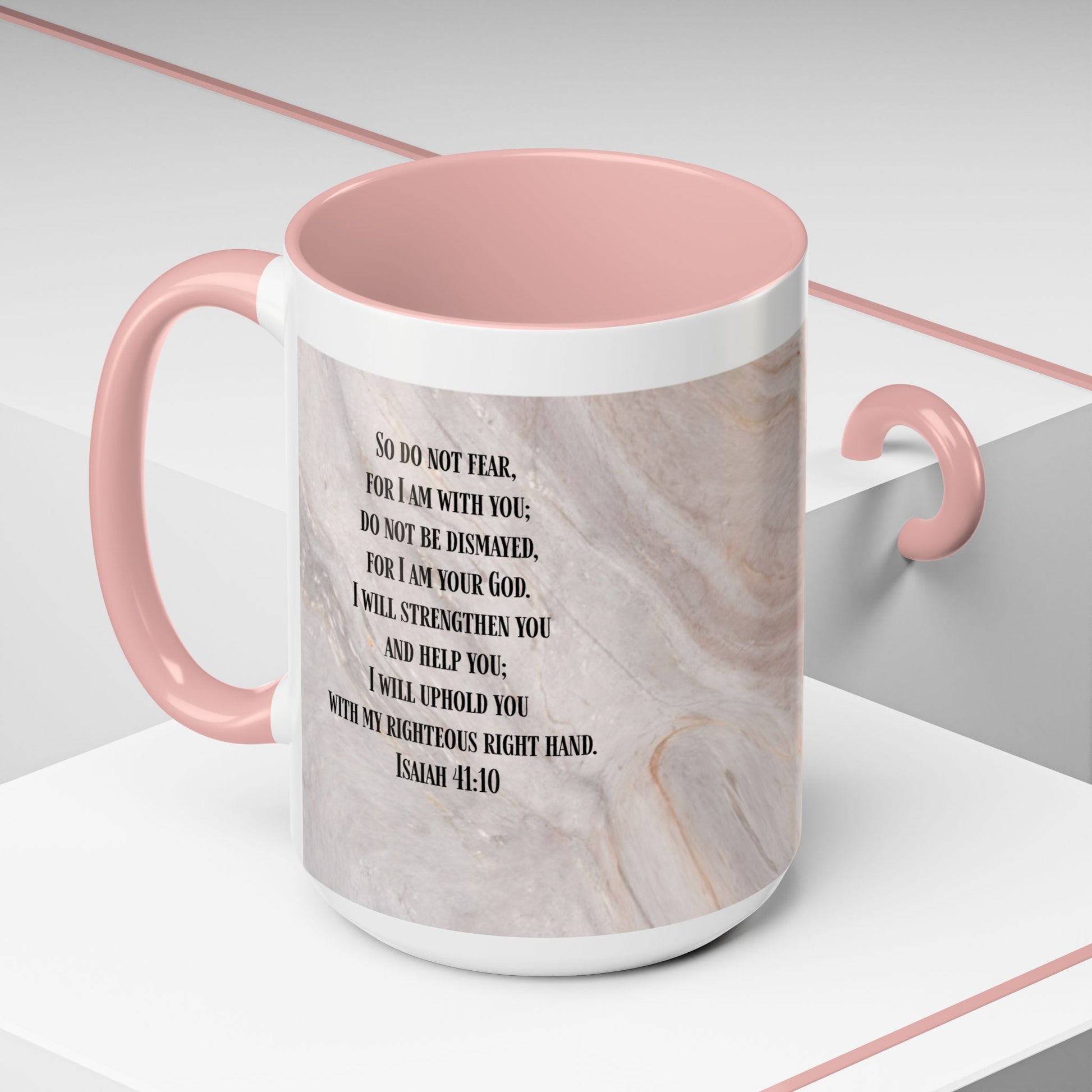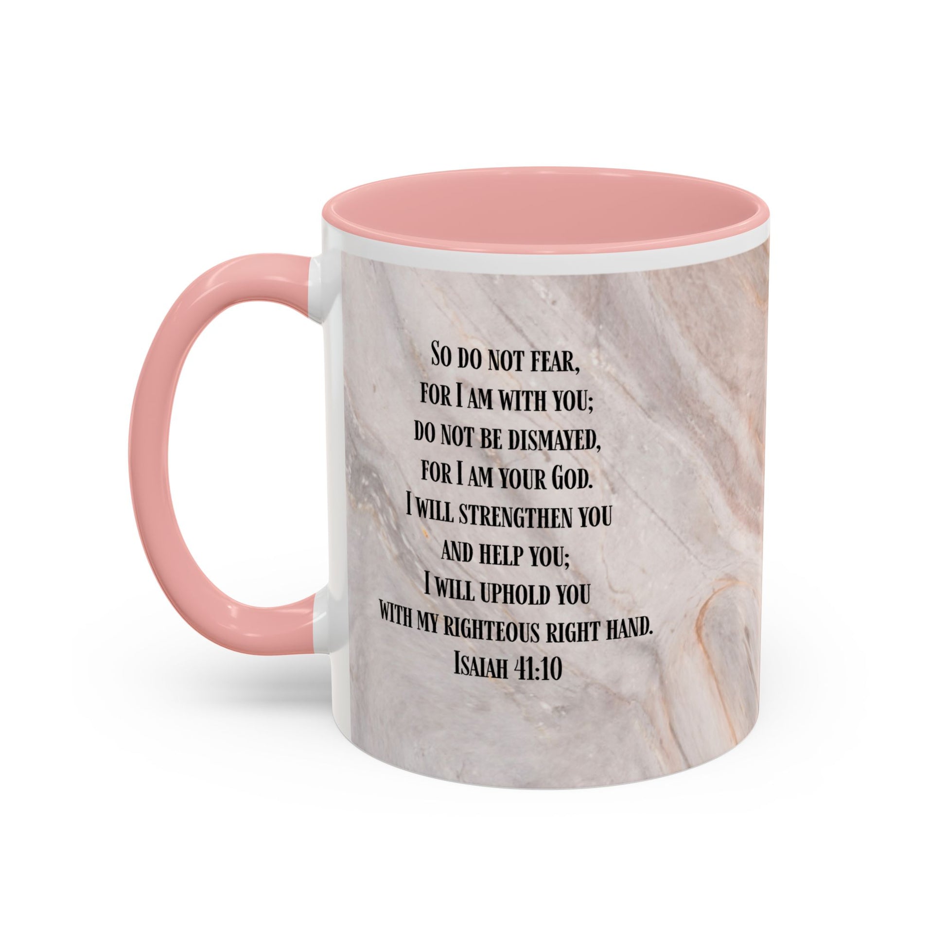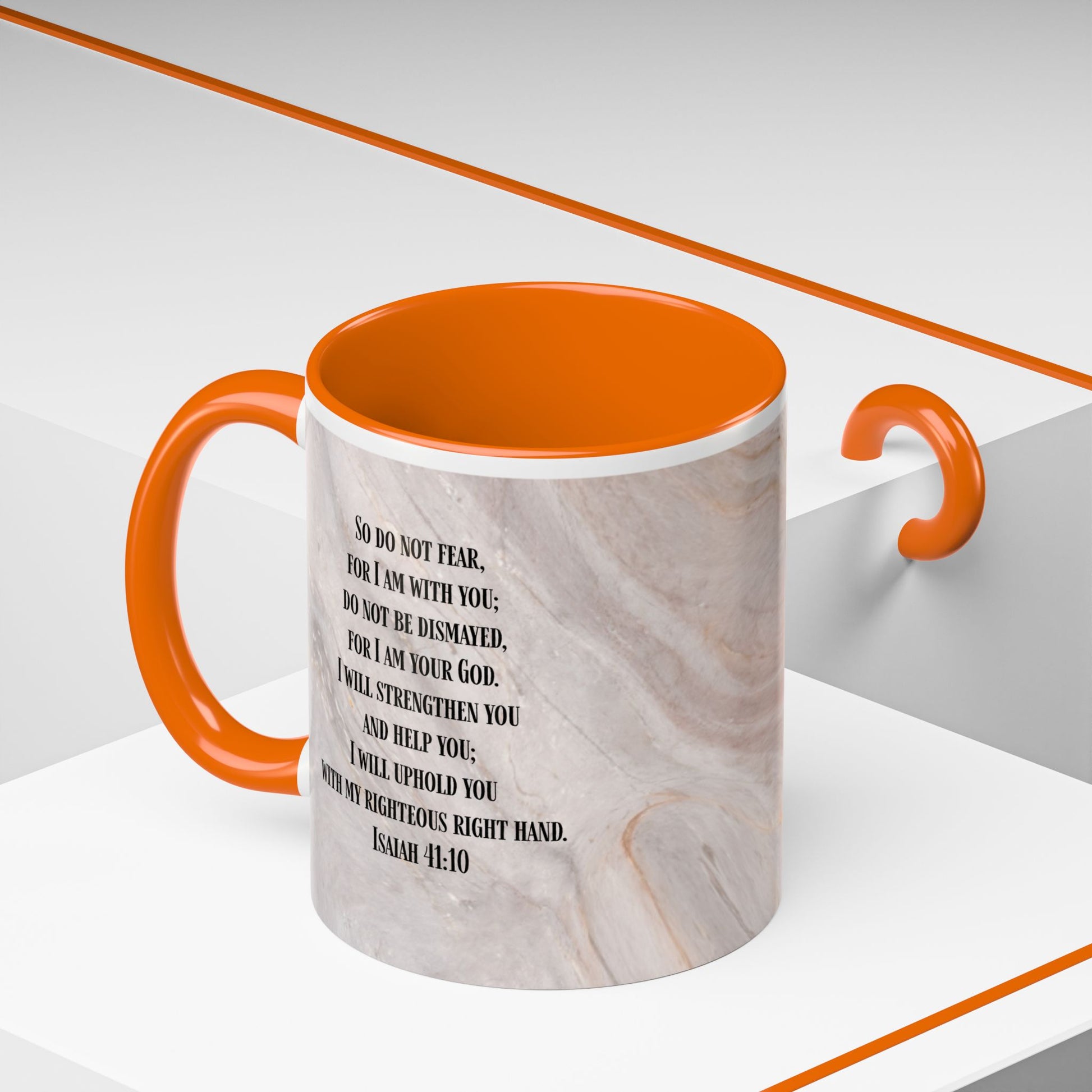 Isaiah 41:10 Encouragement Mug – Christian Scripture Coffee Cup with Wraparound Textured Design – Faith & Strength Gift in Multiple Accent Colors