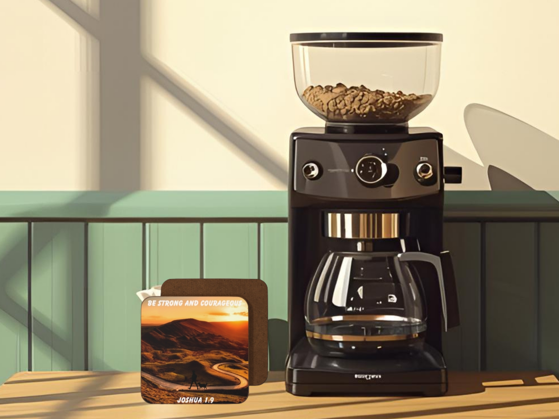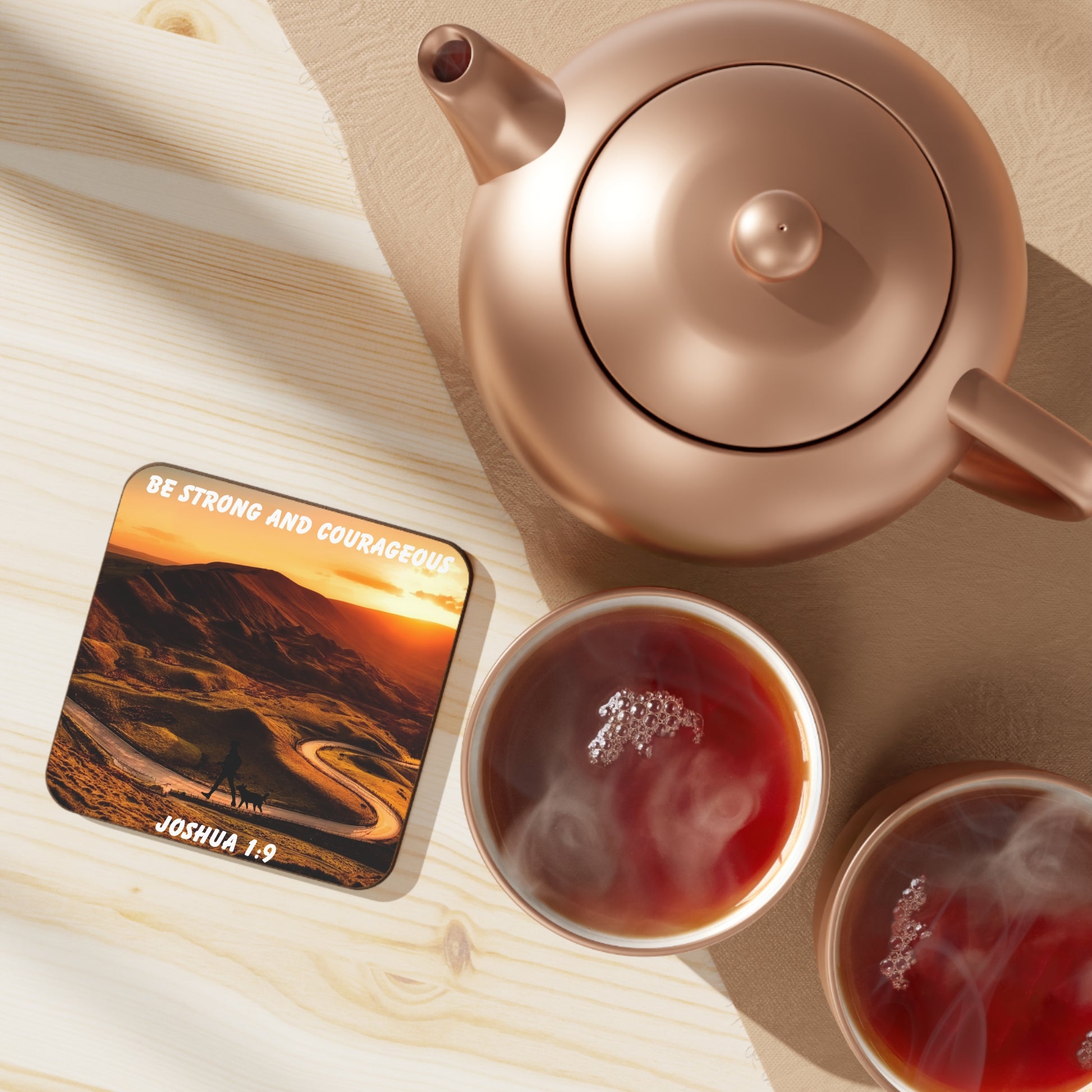 Joshua 1:9 Bible Verse Coaster – Be Strong and Courageous | Christian Home Décor Gift