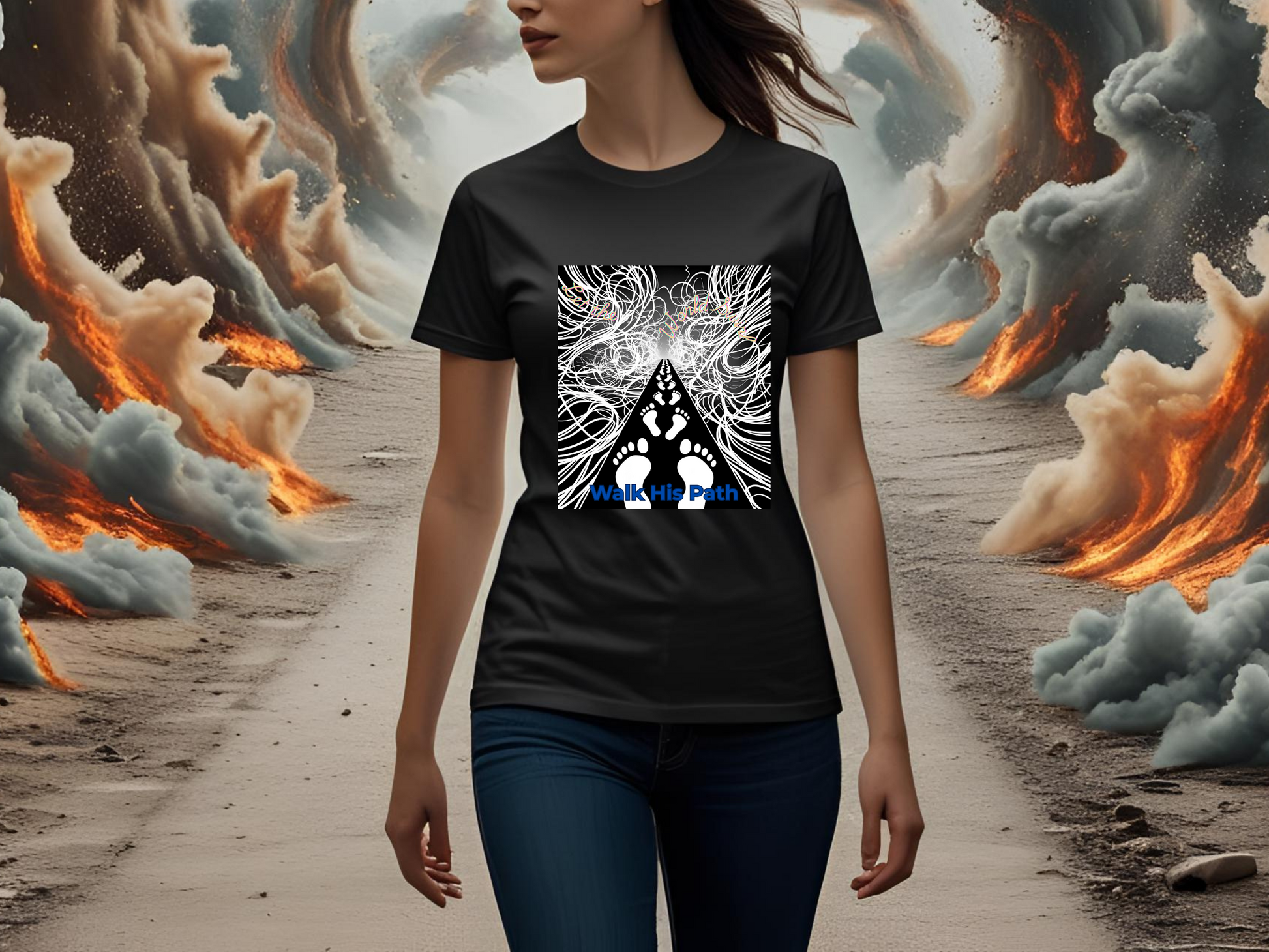 Embrace calm in the chaos with this unique Christian t-shirt. Surrounded by swirling distractions like storms, noise, cellphones and confusion, the design centers on a straight path with the words: “Let the world swirl, stay on His path.” A bold, faith-filled reminder to keep walking with God, no matter what spins around you.