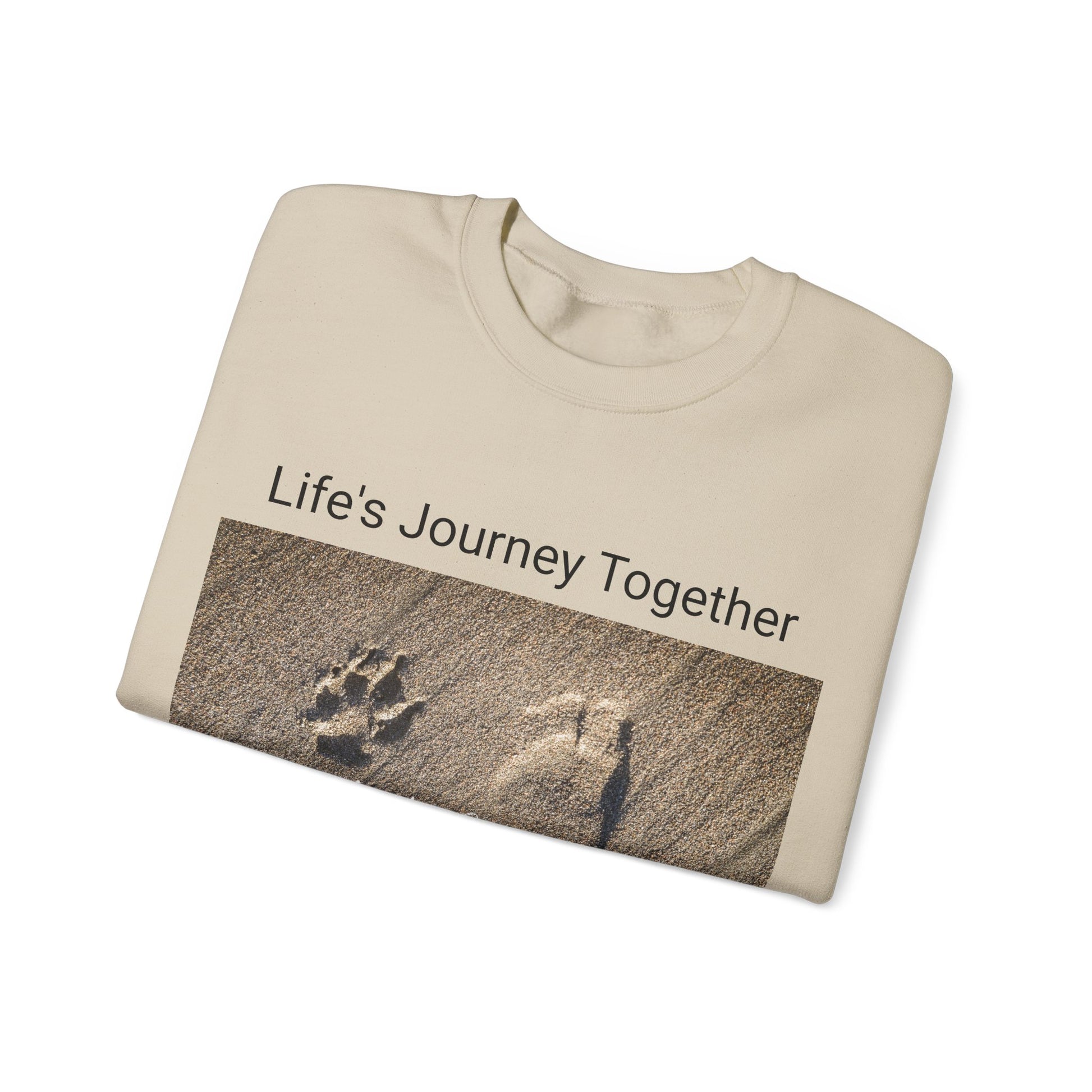 Embrace the bond between you and your furry friend with our "Life's Journey Together with My Dog" unisex sweatshirt. Made with soft, high-quality fabric, comfortable Heavy Blend™ polyester/cotton, provides comfort and style for dog lovers everywhere. Perfect for casual wear, cozy outings or as a heartfelt gift for dog moms and dads. It's a beautiful reminder of the love and adventures shared with your pup. Whether you're out on a walk or relaxing at home, this sweatshirt will keep you warm and remind you of your dog’s unwavering companionship.