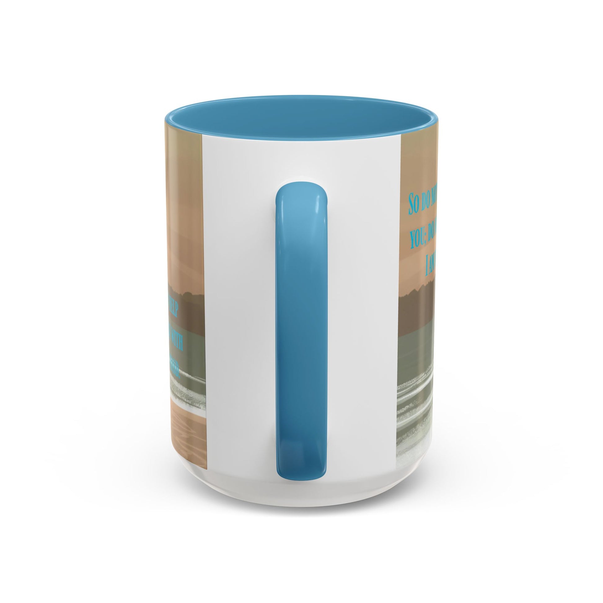 Mug - Isaiah 41:10 Beach Sunrise Gradient Design l Light Blue Accent