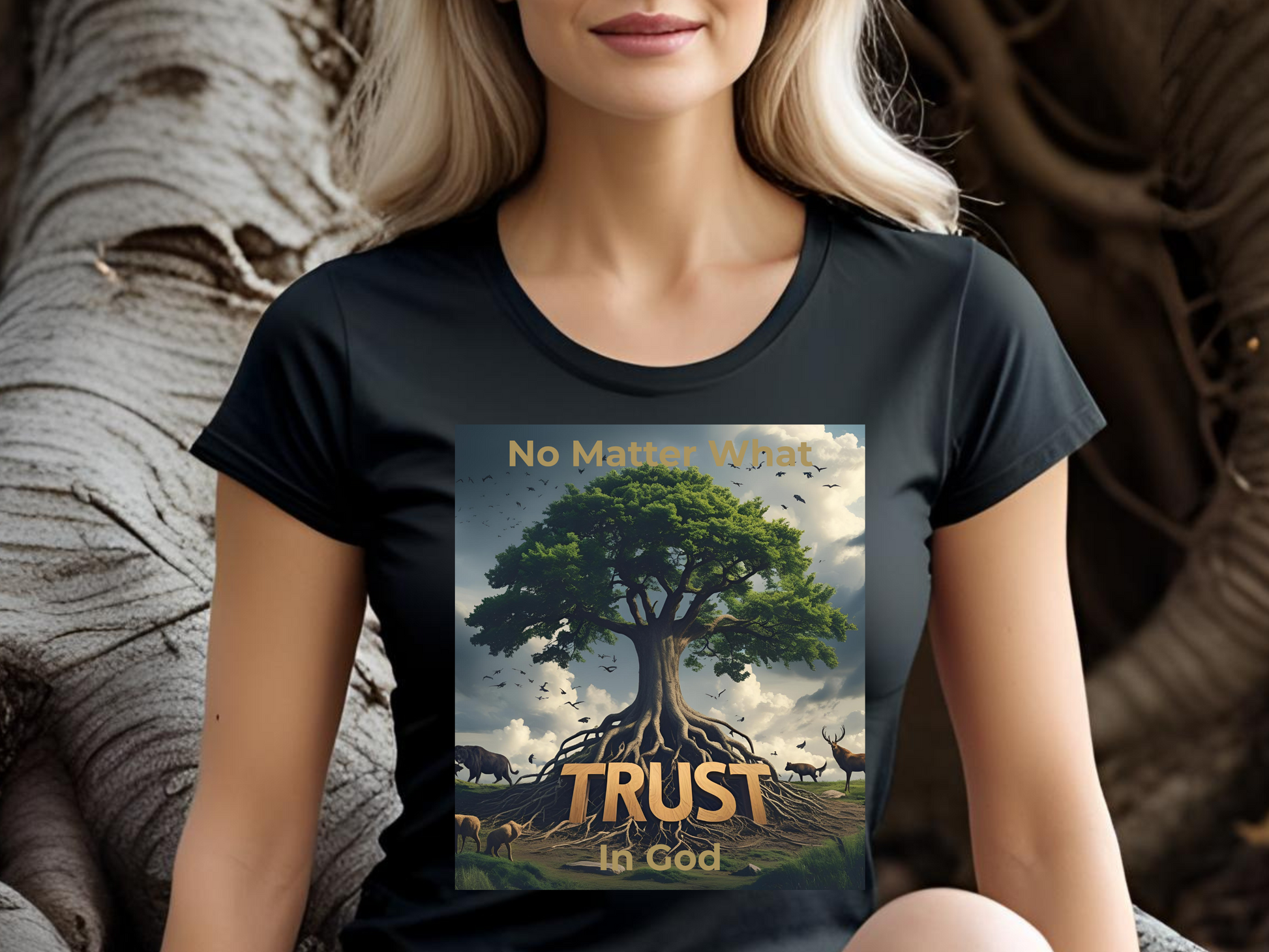 "No Matter What, Trust in God" Christian T-Shirt – Rooted Faith Graphic Tee with Storm & Wildlife