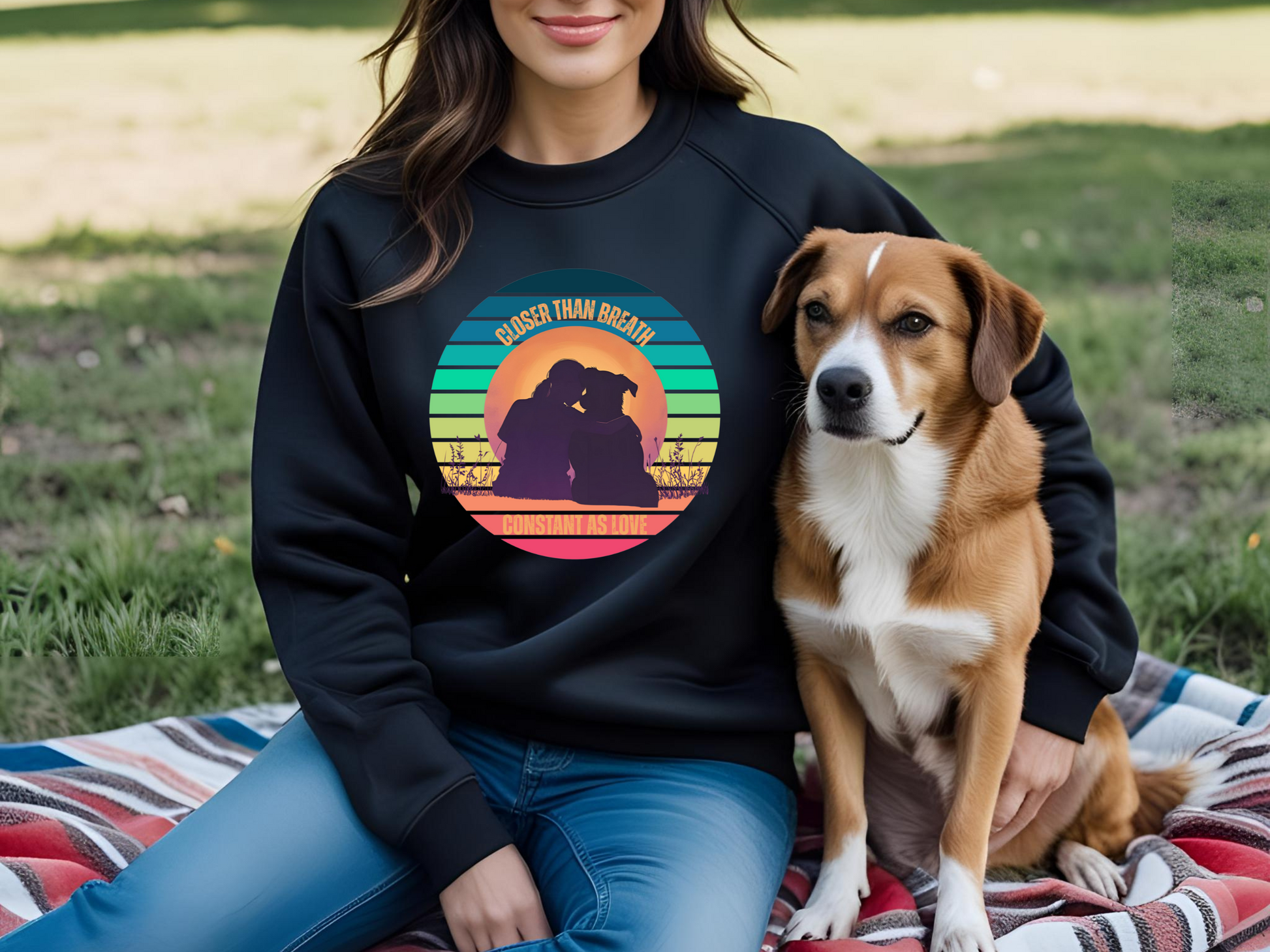 Celebrate the divine bond between you, your faithful pup, and your Creator with our retro sunset Christian sweatshirt. Featuring the heartfelt phrase “Closer than breath, constant as love”, this cozy pullover draws inspiration from Proverbs 18:24, reflecting the unwavering love of God mirrored in your dog’s loyal companionship.
