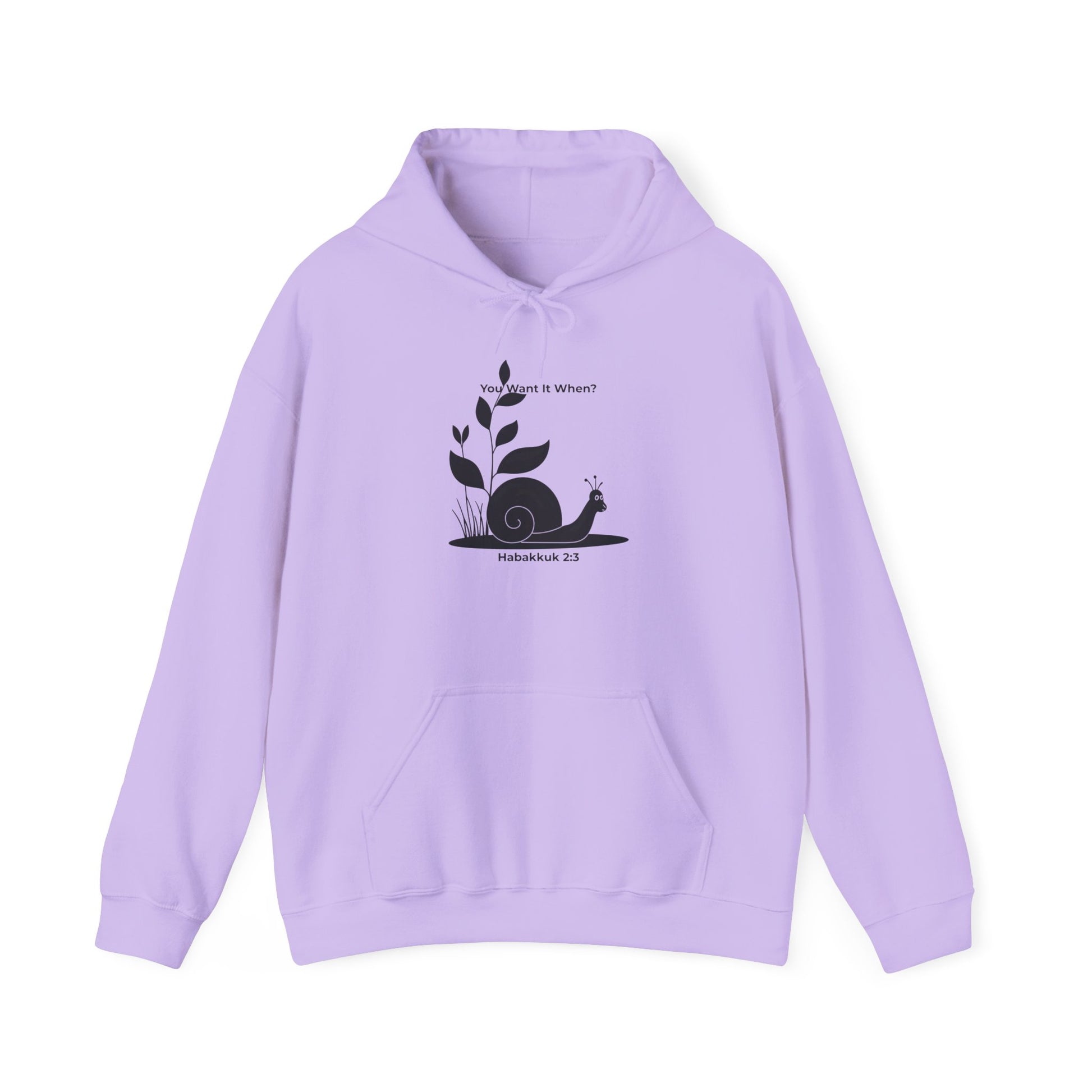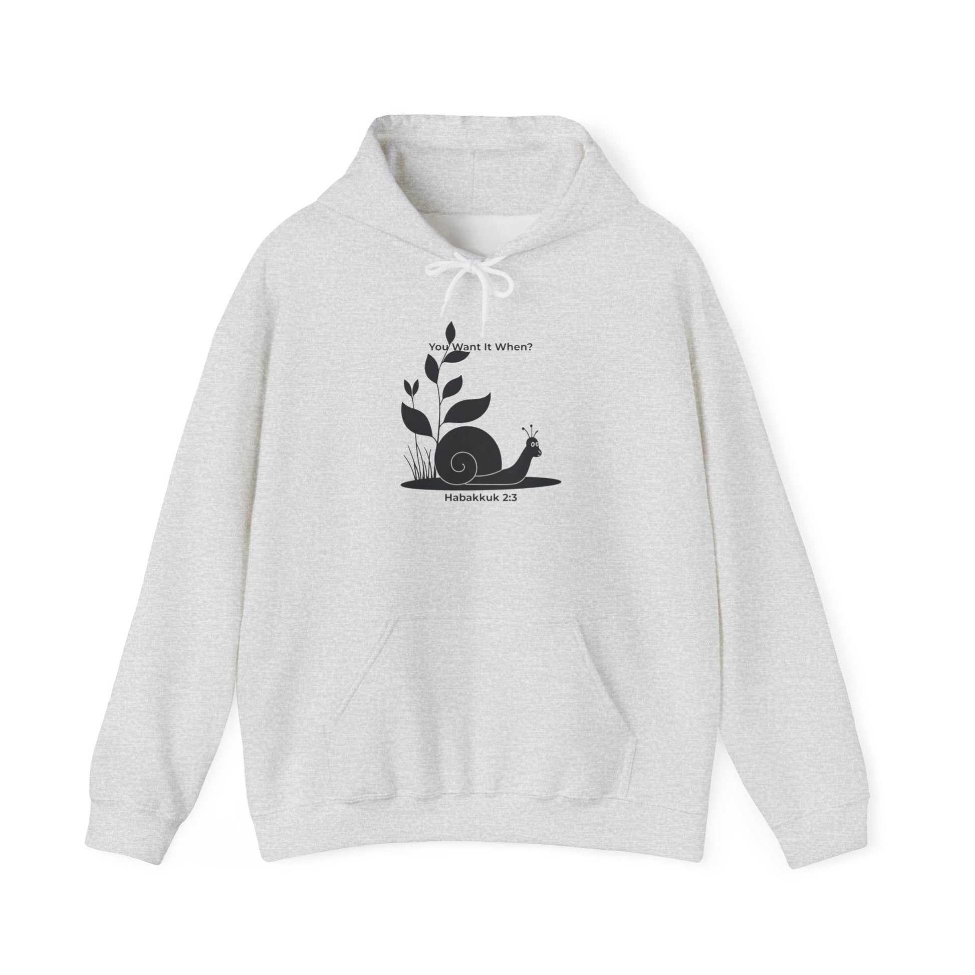 Bring faith and humor together with this Christian snail design! Featuring a playful silhouette snail and the phrase “You want it when?” paired with Habakkuk 2:3 (“If it seems slow, wait for it; it will surely come”), this design is a reminder of God’s perfect timing. Perfect gift for Christians who appreciate patience, encouragement, and a good laugh. Available on t-shirts, cozy sweatshirts, and coffee mugs.