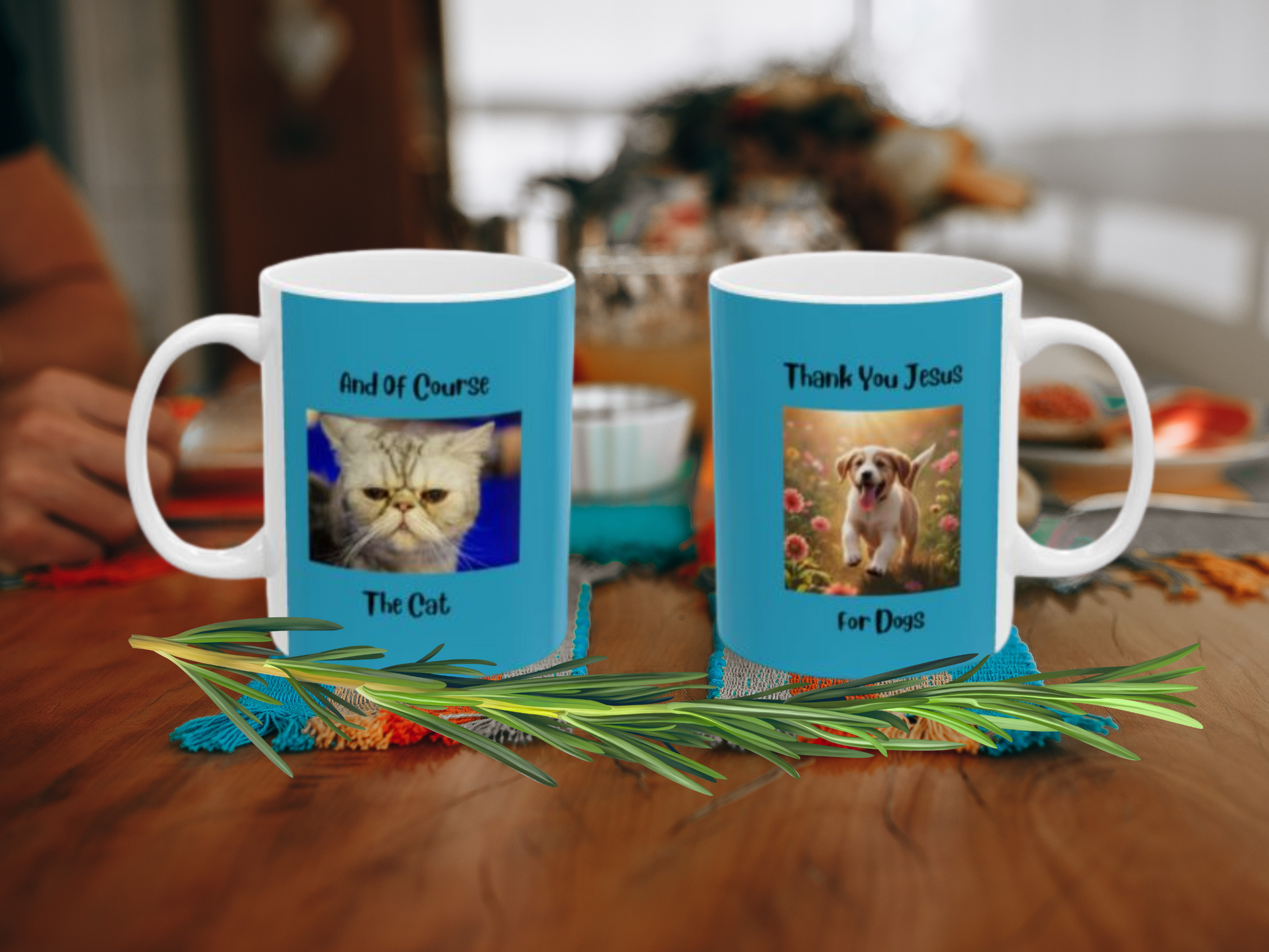 Celebrate the joy and unconditional love that dogs and cats bring into your life with this heartfelt Ceramic Mug, a perfect way to thank Jesus for the special pets He has blessed you with. Whether you're sipping your morning coffee or enjoying a quiet moment with your favorite tea, this mug serves as a beautiful reminder of the companionship and comfort animals provide. With a glossy finish and charming design, it makes a delightful addition to your kitchen or office, reflecting gratitude for God's creation. This mug is not only functional but also a thoughtful gift for pet lovers, making it ideal for birthdays, holidays or special occasions. Share your appreciation for the furry friends that make life brighter and more fulfilling and let this mug be a daily reminder of the blessings God has given us.