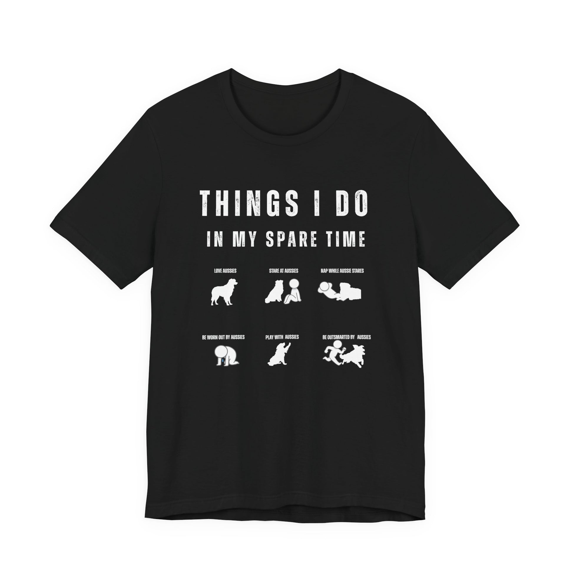 Things I Do in My Spare Time Aussie T-Shirt | Australian Shepherd Dog Lover Tee | White Silhouette Humor