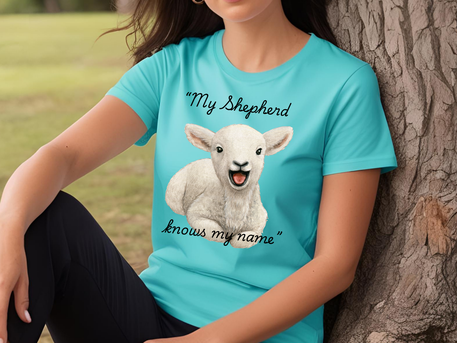 Cute Lamb Christian T-Shirt – "My Shepherd Knows My Name"